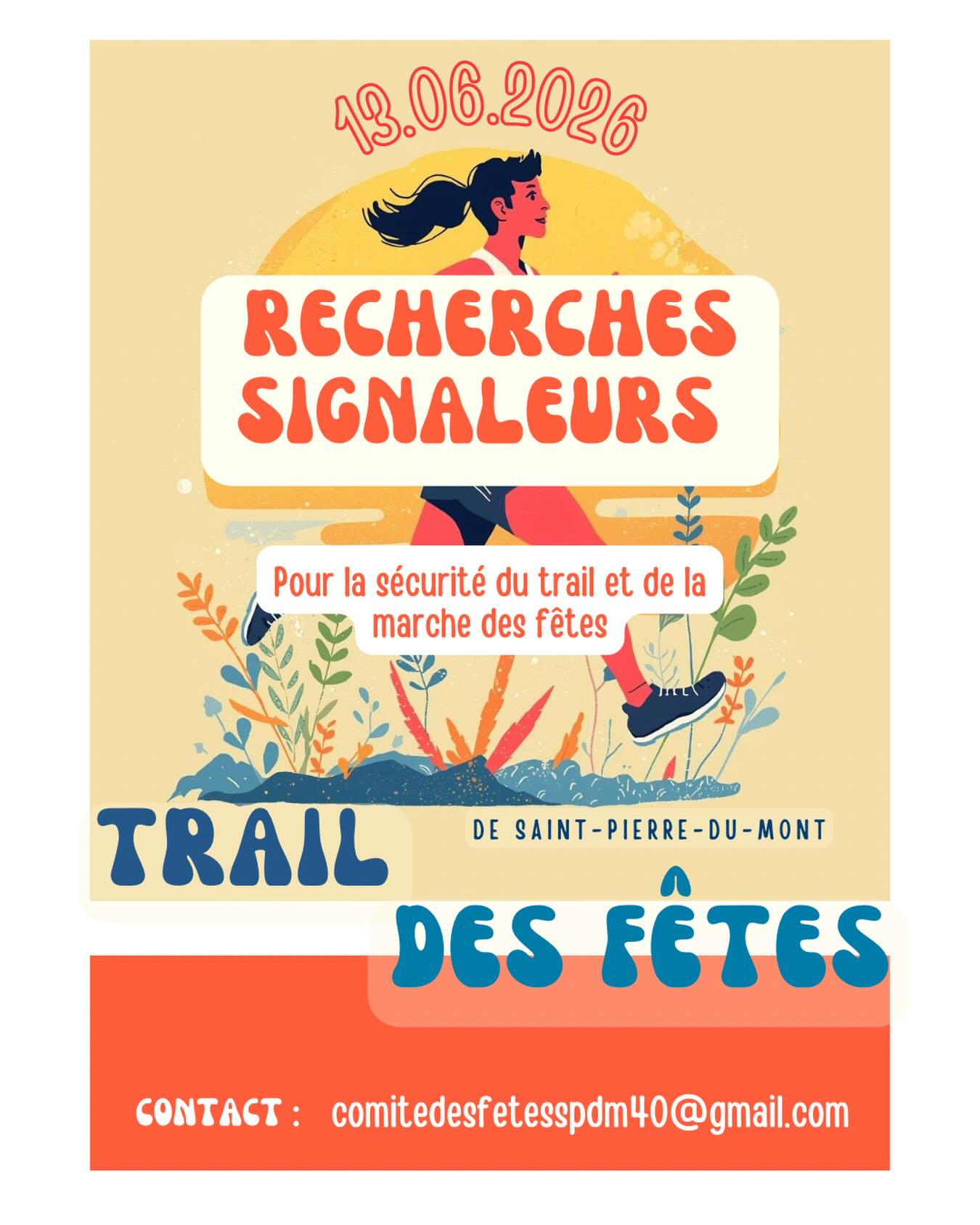 Le Comité des Fêtes et la Ville de Saint-Pierre-du-Mont sont à la recherche de signaleurs pour assurer le bon déroulement du trail urbain de Saint-Pierre-du-Mont.