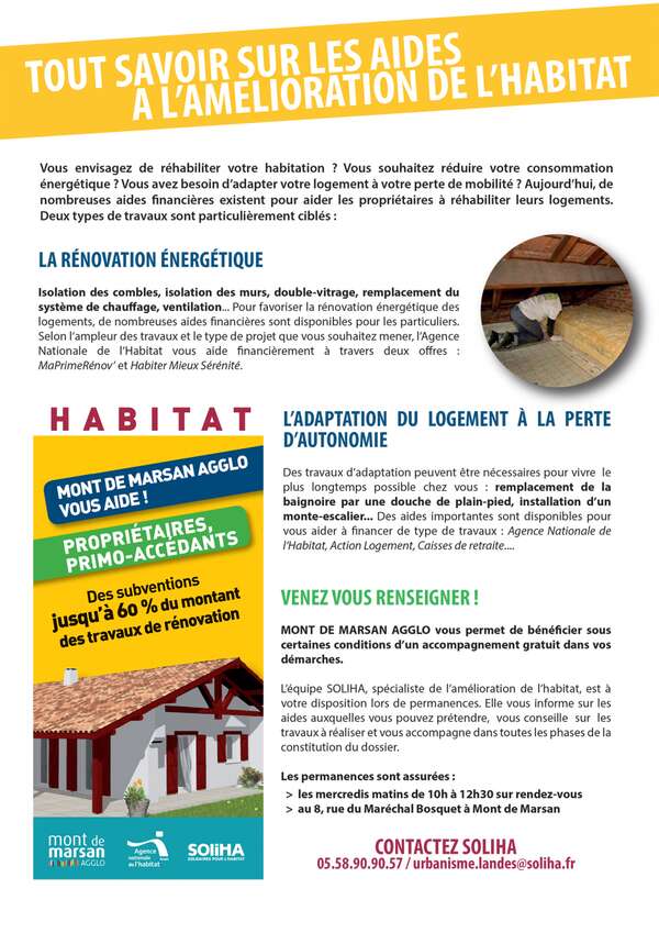 Mont de Marsan Agglomération a mis en place des actions en faveur de la rénovation des logements dégradés ou insalubres et de l’amélioration de leur efficacité énergétique.